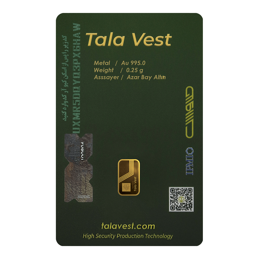 شمش طلا 250 سوتی طلاوست، ساخته شده از طلای 24 عیار و خلوص 995 می باشد. شمش های طلا 24 عیار طلاوست با اوزان کاملا دقیق تولید می شوند و وزن ذکر شده منحصرا مختص شمش بوده و شامل وزن بسته بندی نمی باشد. این شمش 250 سوتی، با طراحی کاملا مینیمال و صنعتی تولید و عرضه شده تا بهترین گزینه برای سرمایه گذاری در طلا با پول کم باشد. شمش های طلا 24 عیار طلاوست کاملا ضدجعل بوده و اصالت سنجی این محصولات توسط هوش مصنوعی و بدون دخالت عوامل انسانی انجام می گیرد. شمش های طلاوست به لطف 13 شاخص امنیتی، گزینه ای مطمئن برای سرمایه گذاری های خرد محسوب می شوند.