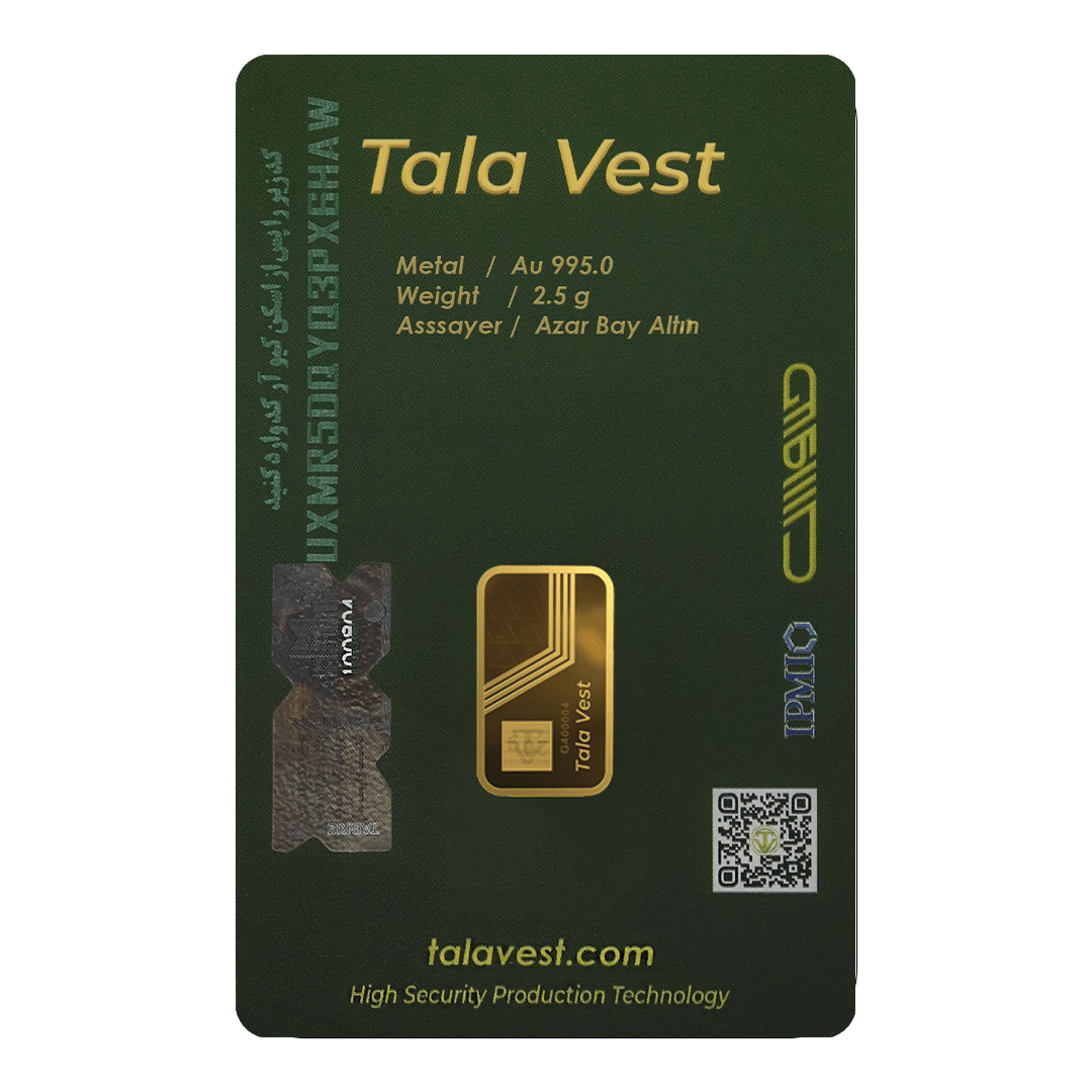 شمش طلا 2.5 گرمی طلاوست، ساخته شده از طلای 24 عیار و خلوص 995 می باشد. شمش های طلا 24 عیار طلاوست با اوزان کاملا دقیق تولید می شوند و وزن ذکر شده منحصرا مختص شمش بوده و شامل وزن بسته بندی نمی باشد. این شمش 2.5 گرمی ، با طراحی کاملا مینیمال و صنعتی تولید و عرضه شده تا بهترین گزینه برای سرمایه گذاری در طلا با پول کم باشد. شمش های طلا 24 عیار طلاوست کاملا ضدجعل بوده و اصالت سنجی این محصولات توسط هوش مصنوعی و بدون دخالت عوامل انسانی انجام می گیرد. شمش های طلاوست به لطف 13 شاخص امنیتی، گزینه ای مطمئن برای سرمایه گذاری های خرد محسوب می شوند.