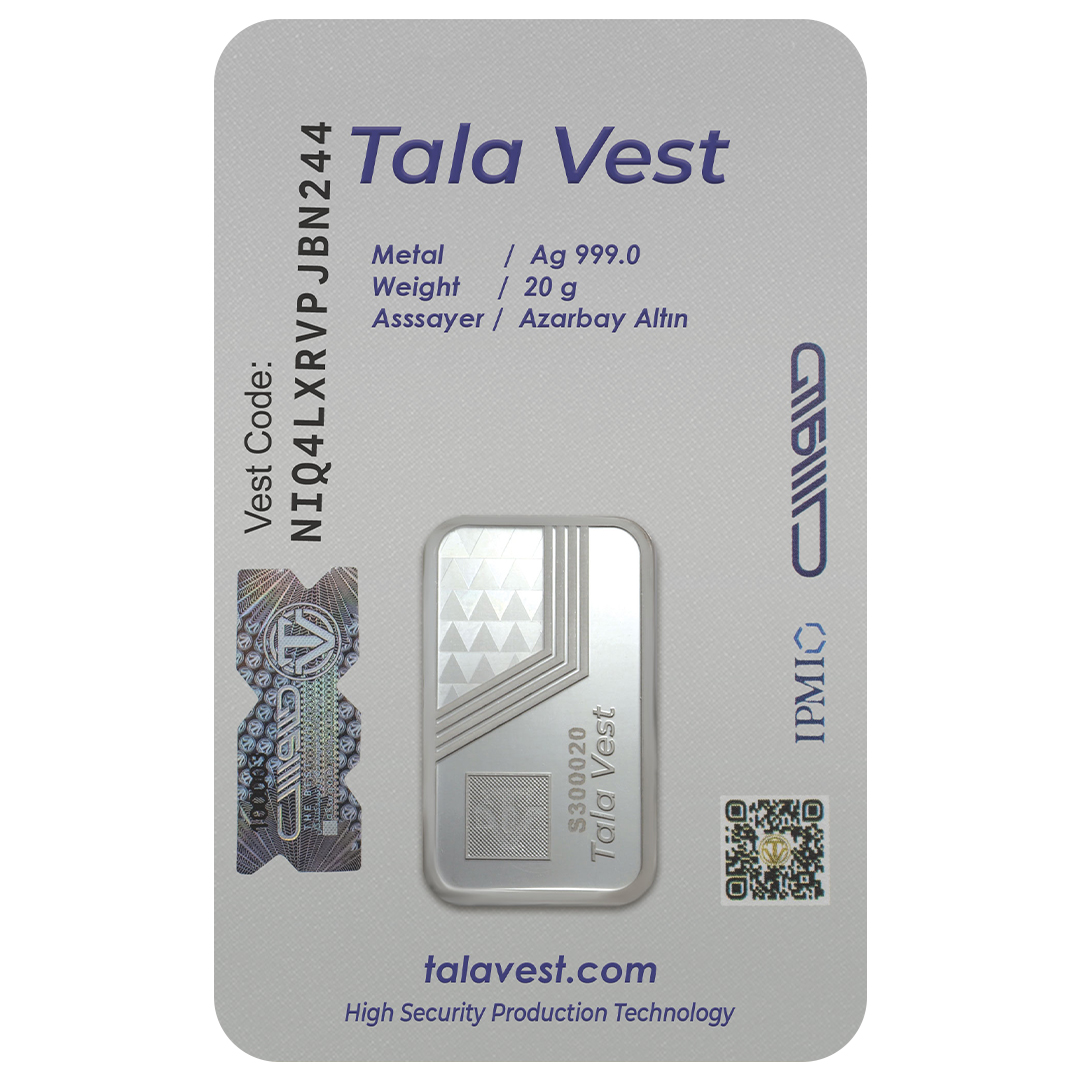 شمش نقره 20 گرمی طلاوست، ساخته شده از نقره خالص 999 می باشد. شمش های نقره طلاوست، با اوزان کاملا دقیق تولید می شوند و وزن ذکر شده منحصرا مختص شمش بوده و شامل وزن بسته بندی نمی باشد. این شمش 20 گرمی ، با طراحی کاملا مینیمال و صنعتی، تولید و عرضه شده تا از کمترین کامزد برخوردار باشد و بهترین گزینه برای سرمایه گذاری باشد. شمش های نقره طلاوست، کاملا ضدجعل بوده و اصالت سنجی این محصولات توسط هوش مصنوعی و بدون دخالت عوامل انسانی انجام می گیرد. شمش های طلاوست به لطف 13 شاخص امنیتی، گزینه ای مطمئن برای سرمایه گذاری های خرد محسوب می شوند.